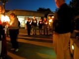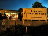 Over 50 residents of Los Altos and Los Altos Hills gathered at Singer Plaza for a candle light vigil one year after the start of the latest Iraq war and the formation of Los Altos Voices for Peace. We asked ourselves to find, plant, and nourish the seeds of peace. Many spoke out about their own hopes for change and for a more peaceful world. After joining in singing John Lennon's 'Imagine', the participants walked to the City Library to see the Peace Pole near the location where it will be permanently planted and to join in singing 'One Night I Had the Strangest Dream'. See also Vince's pictures from the vigil.